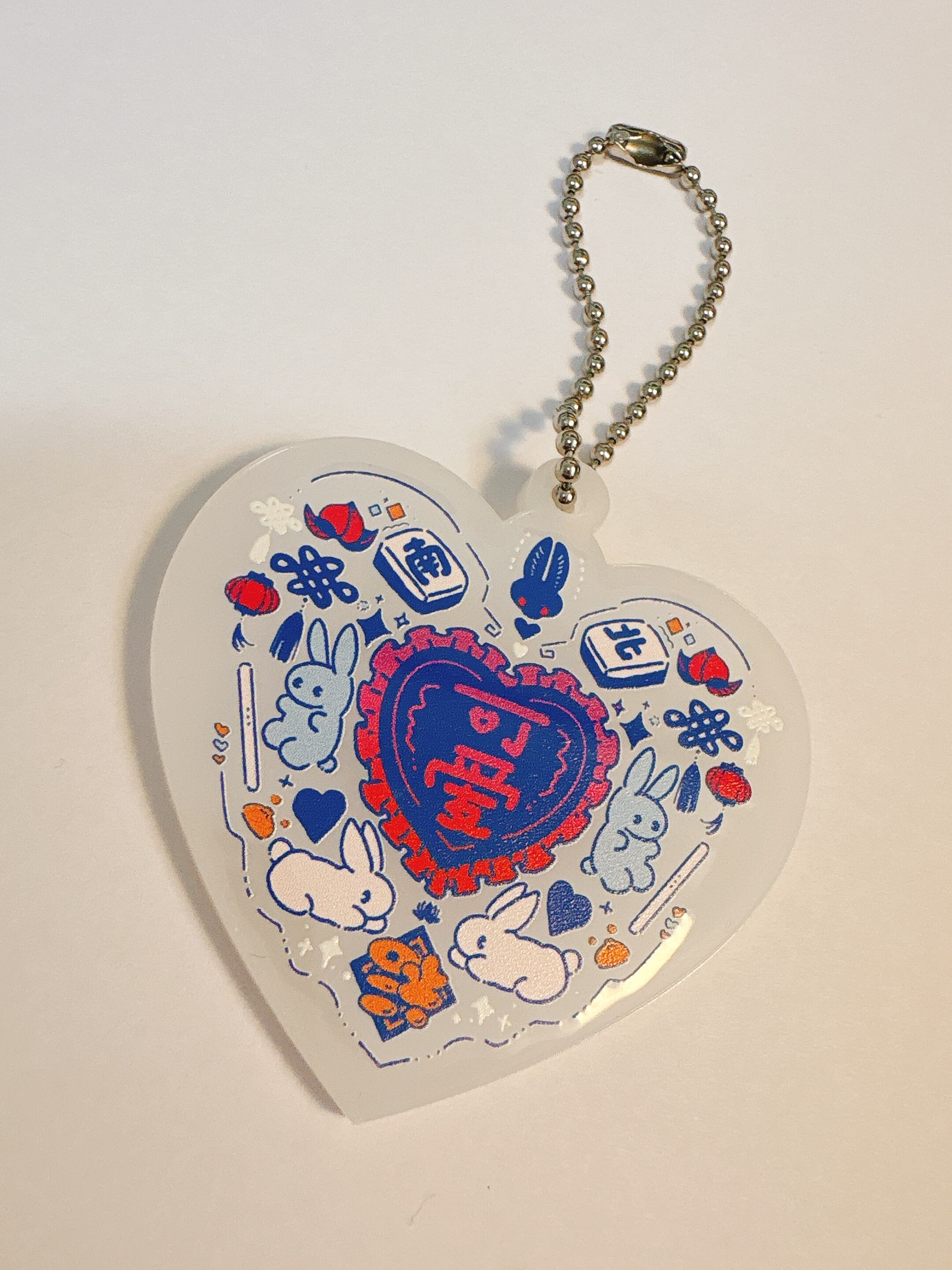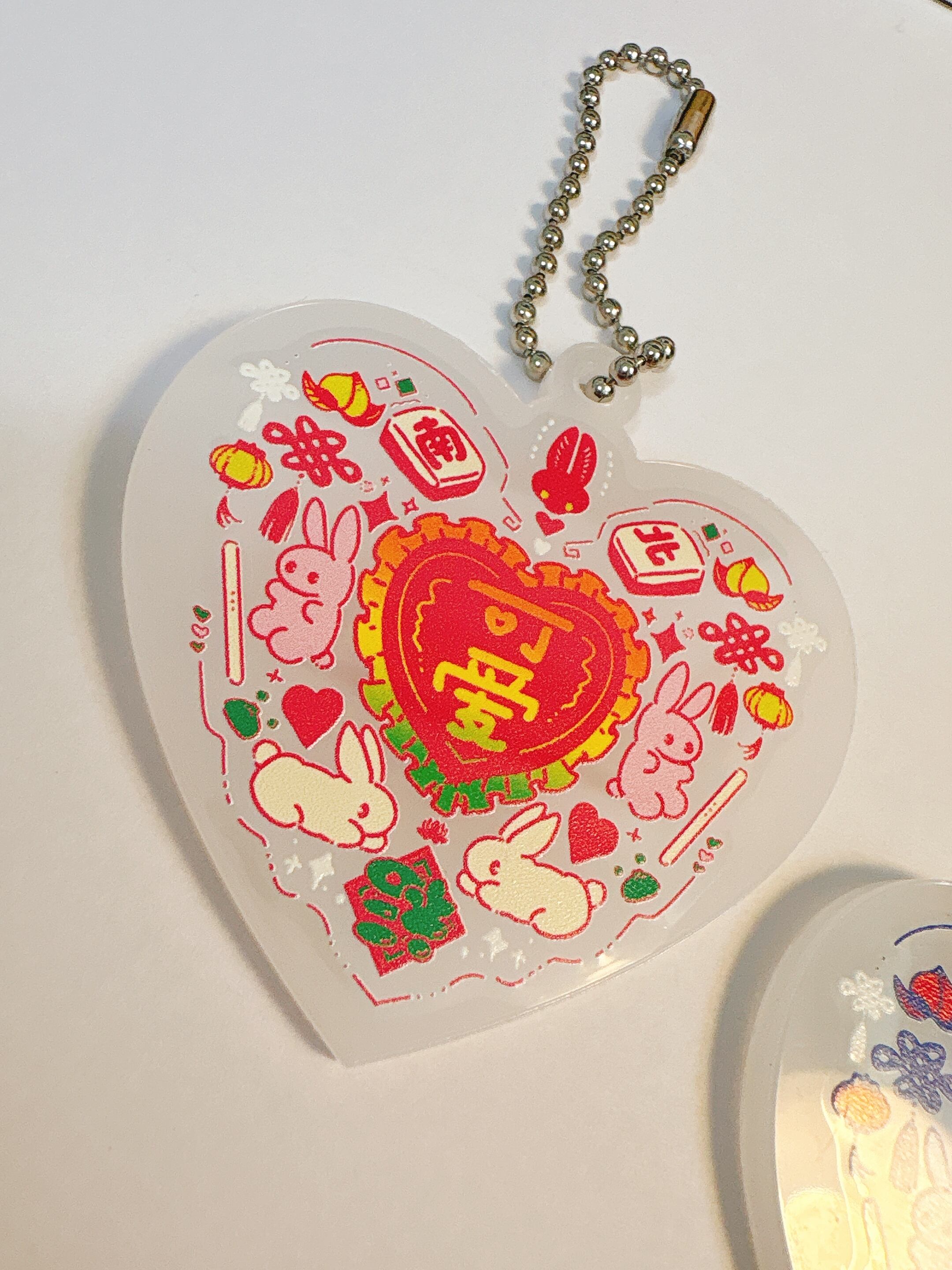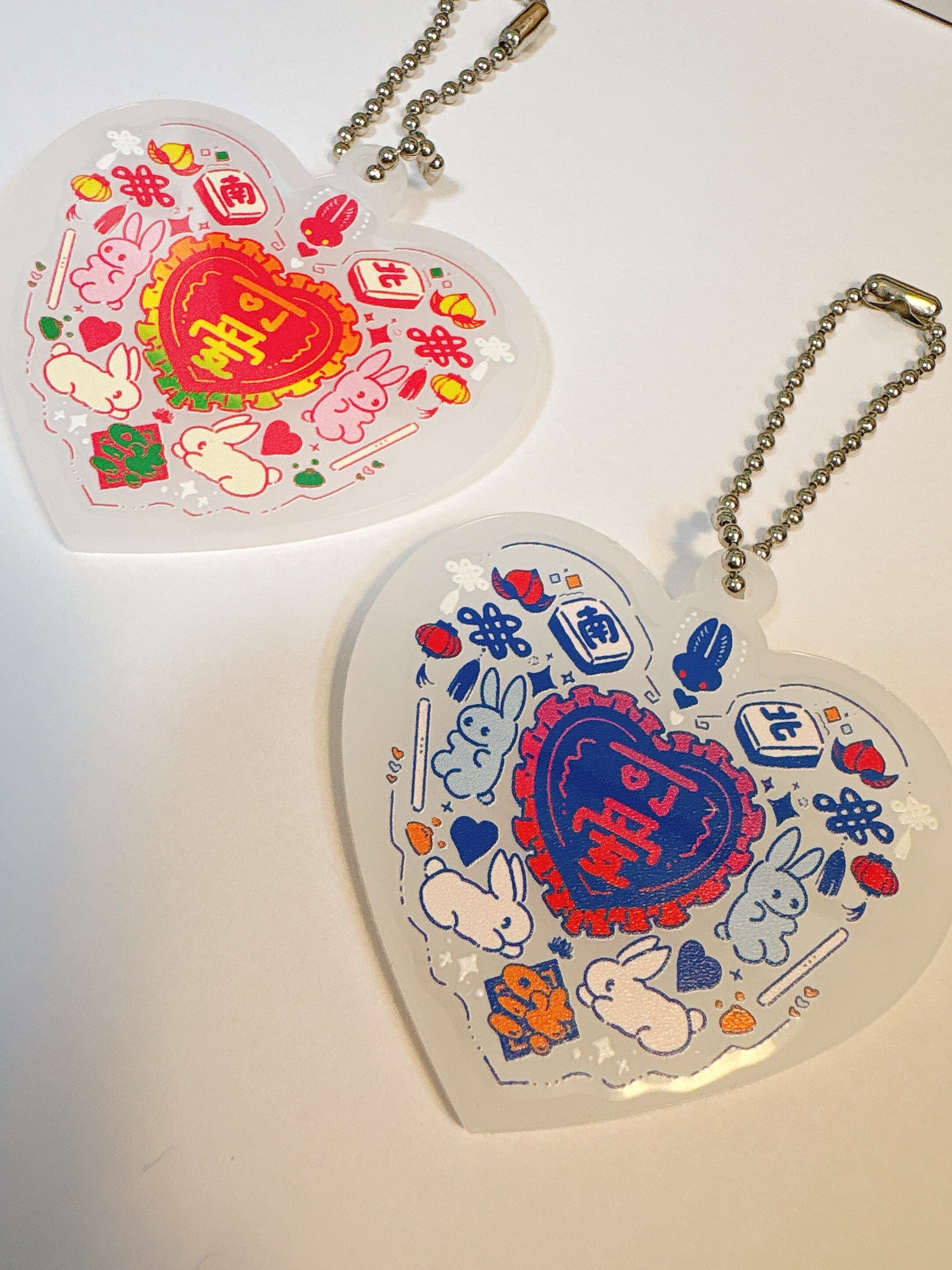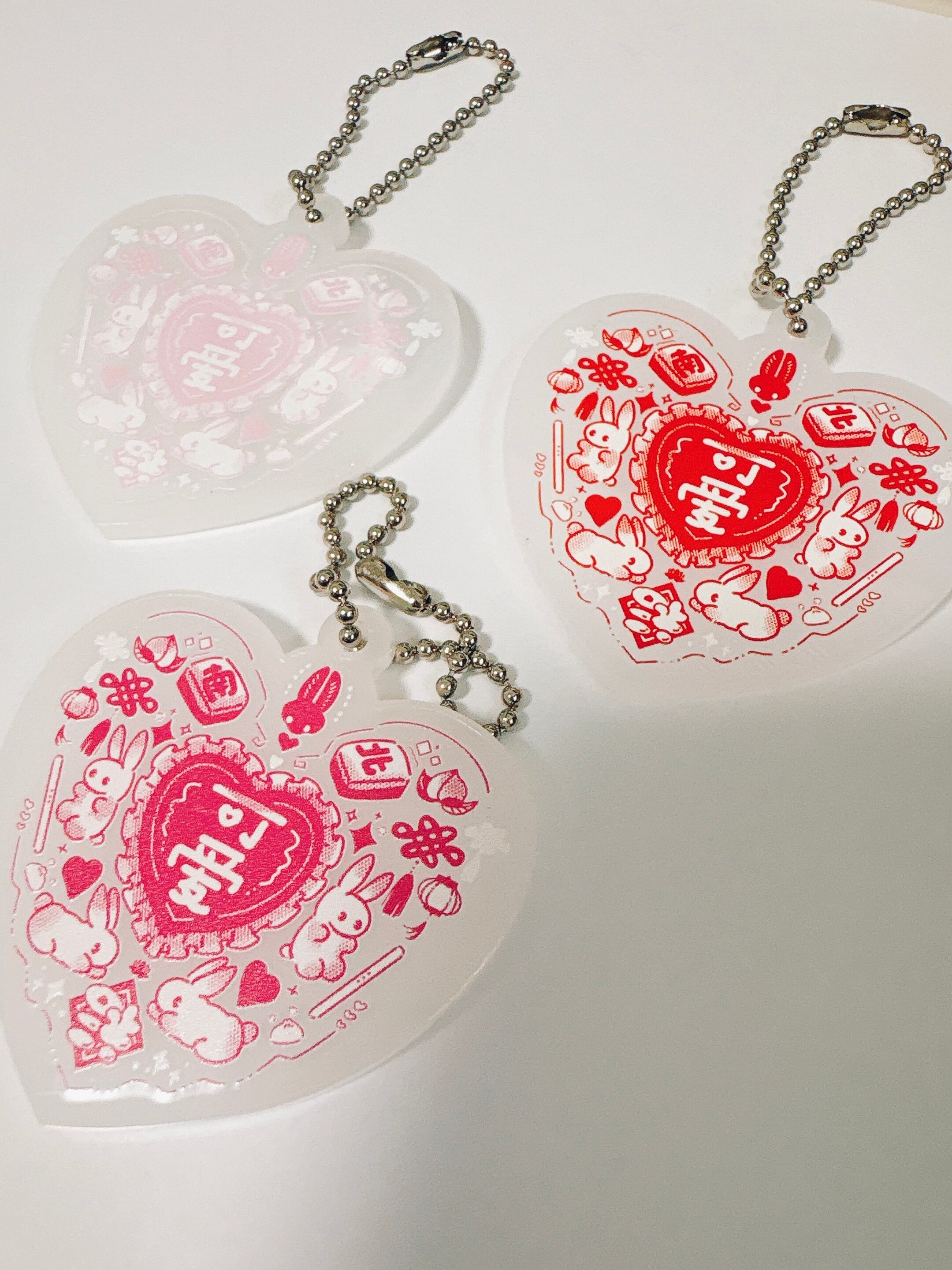 可爱商店で販売中のアクリルキーホルダーになります。 可爱商店のロゴマークに加え、 語呂のいい中華造語 ・喜喜神龍(ルンルンシェンロン) ・新春熊猫(シンシュンシュンマオ) も多数ご用意がございます。 カラーバリエーションも豊富です。 サイズ:約5.5㎝