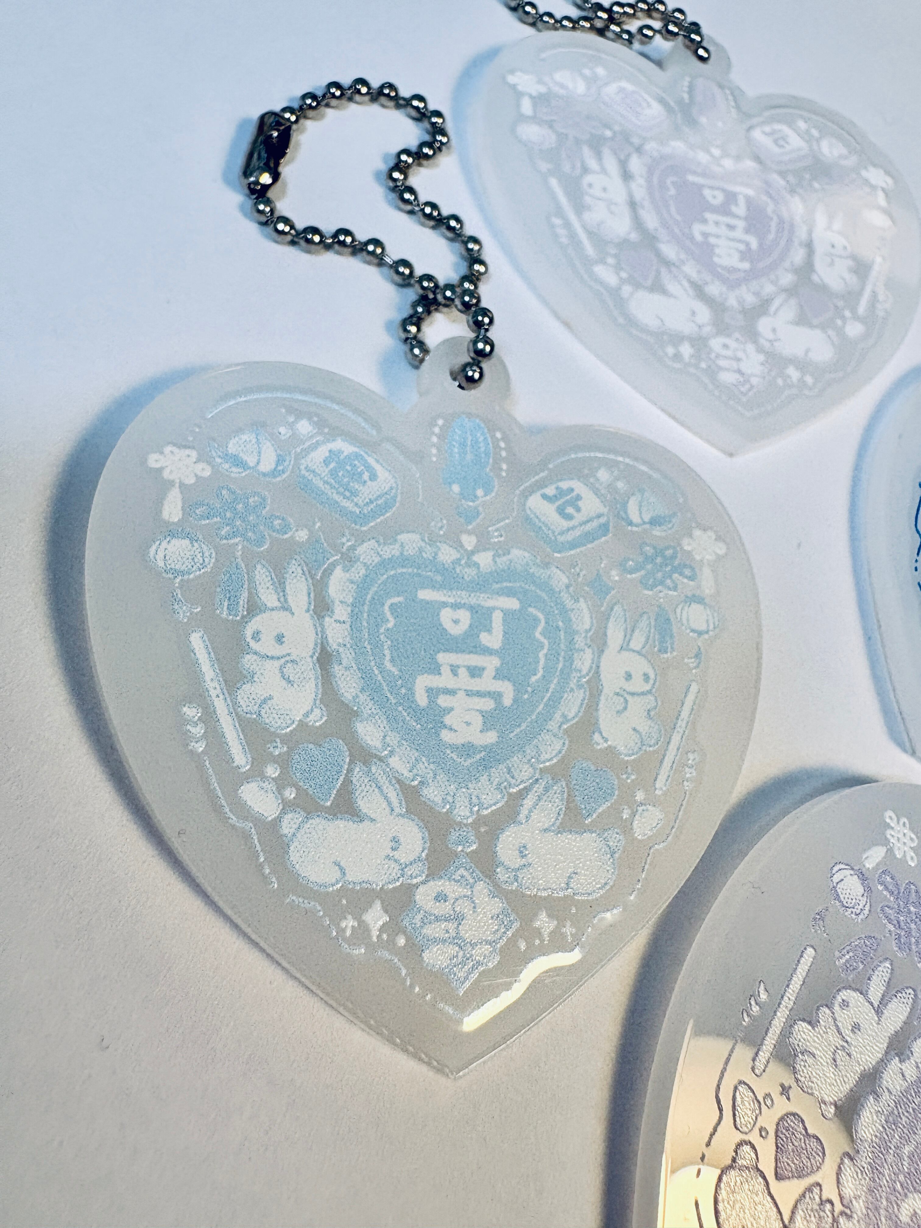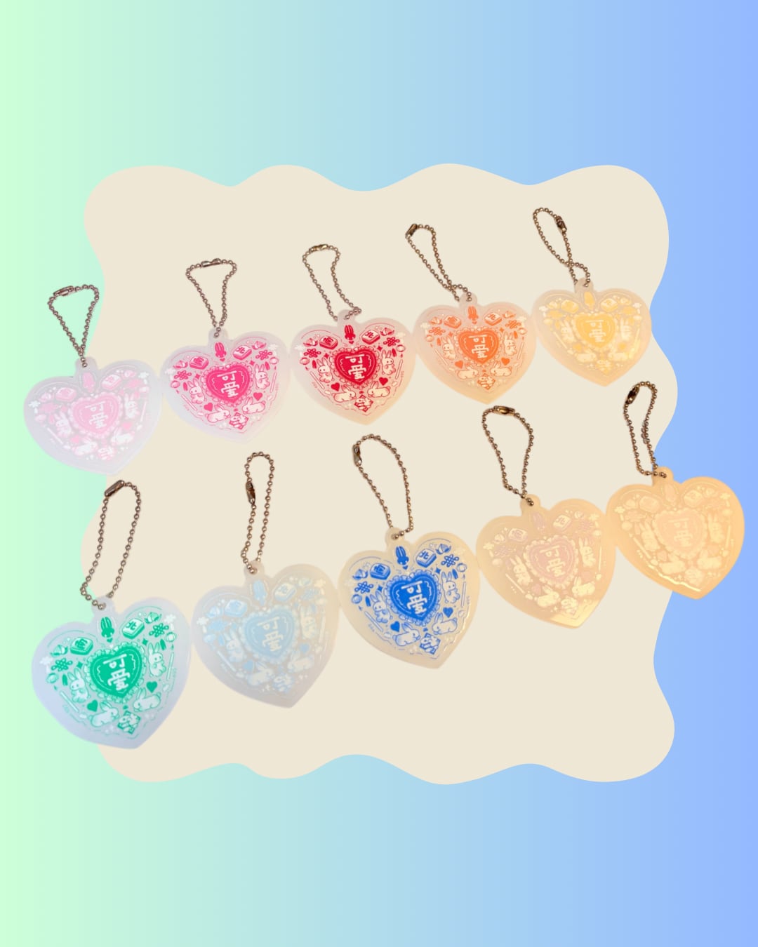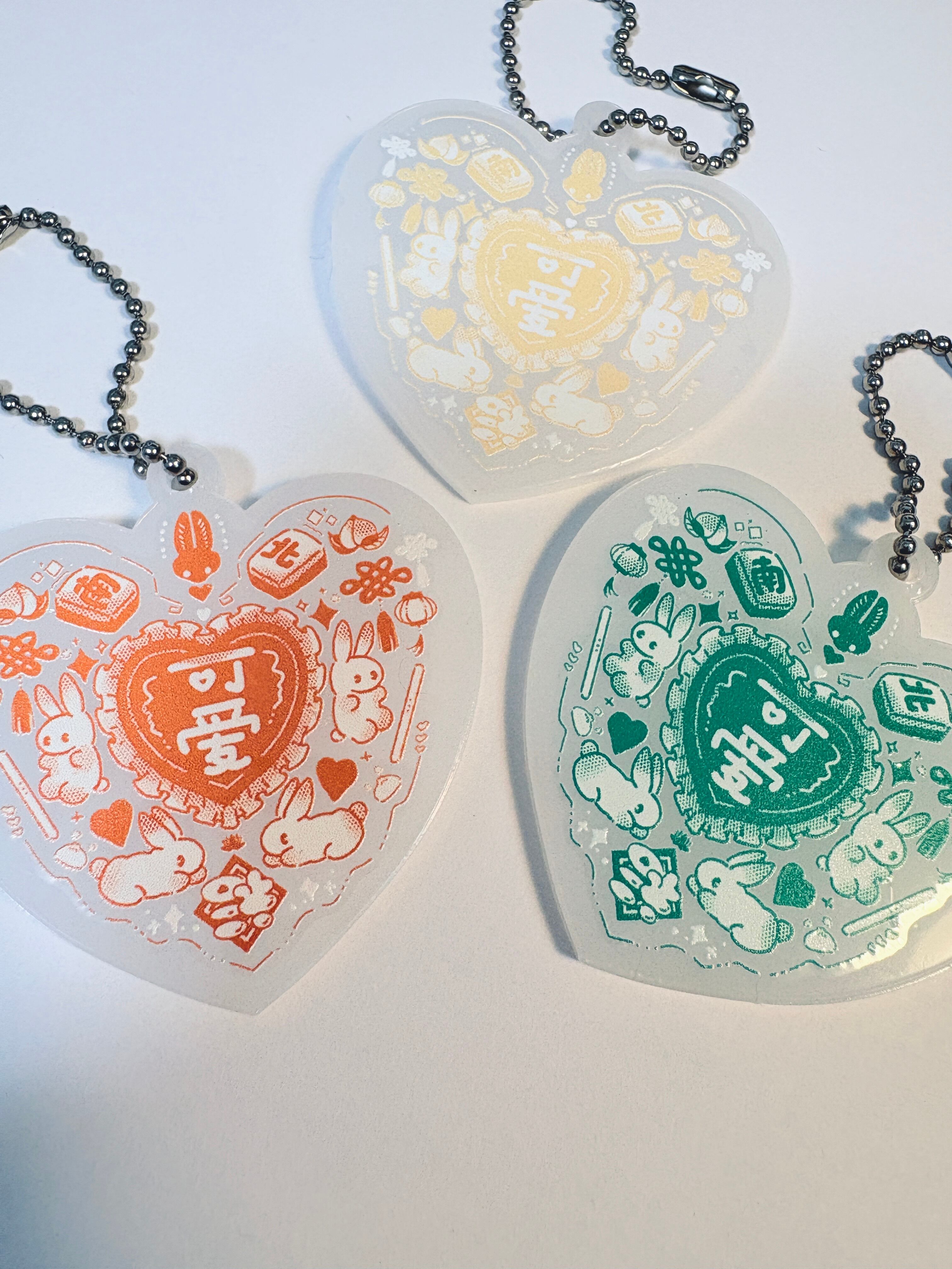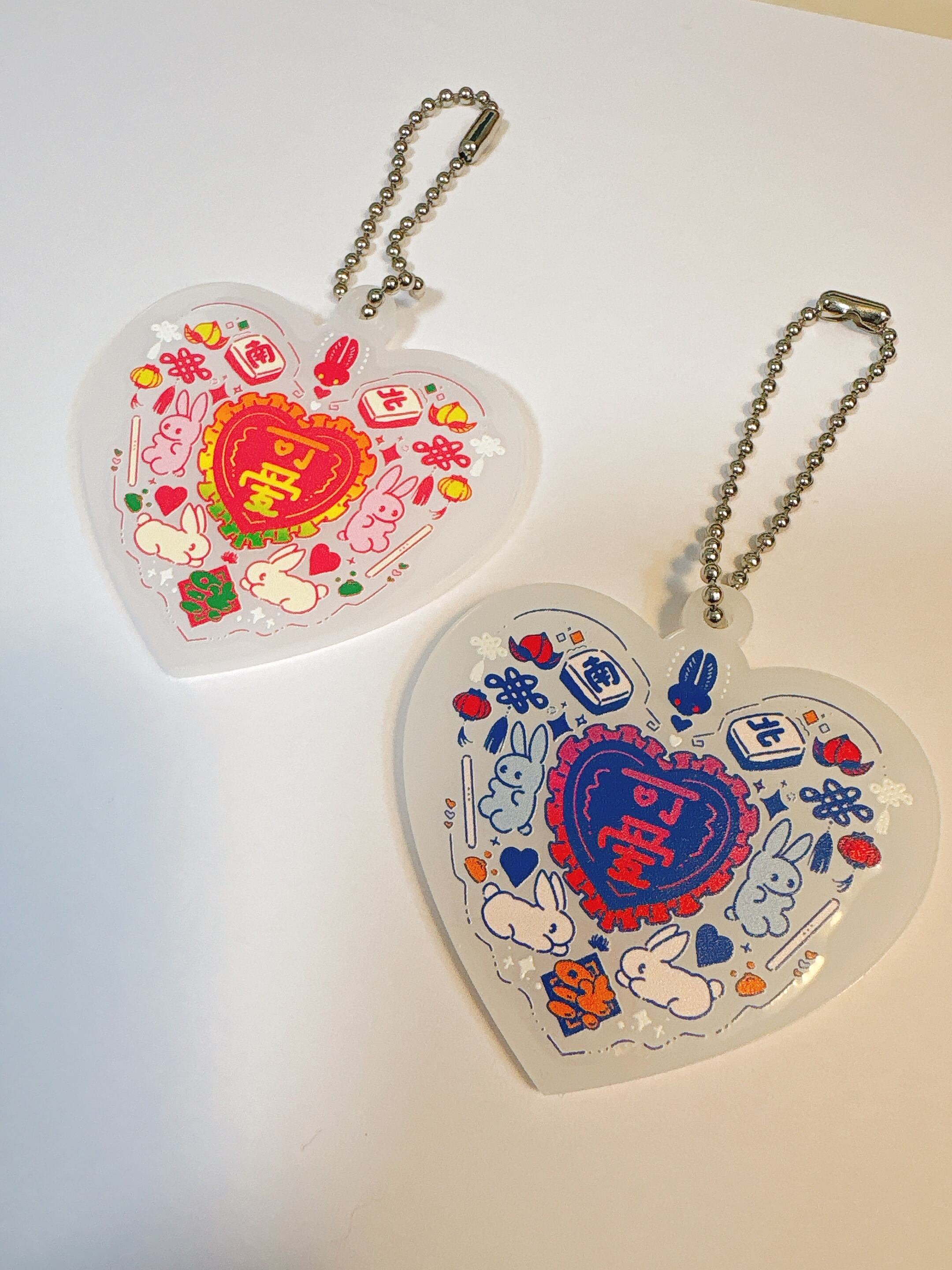 可爱商店で販売中のアクリルキーホルダーになります。 可爱商店のロゴマークに加え、 語呂のいい中華造語 ・喜喜神龍(ルンルンシェンロン) ・新春熊猫(シンシュンシュンマオ) も多数ご用意がございます。 カラーバリエーションも豊富です。 サイズ:約5.5㎝