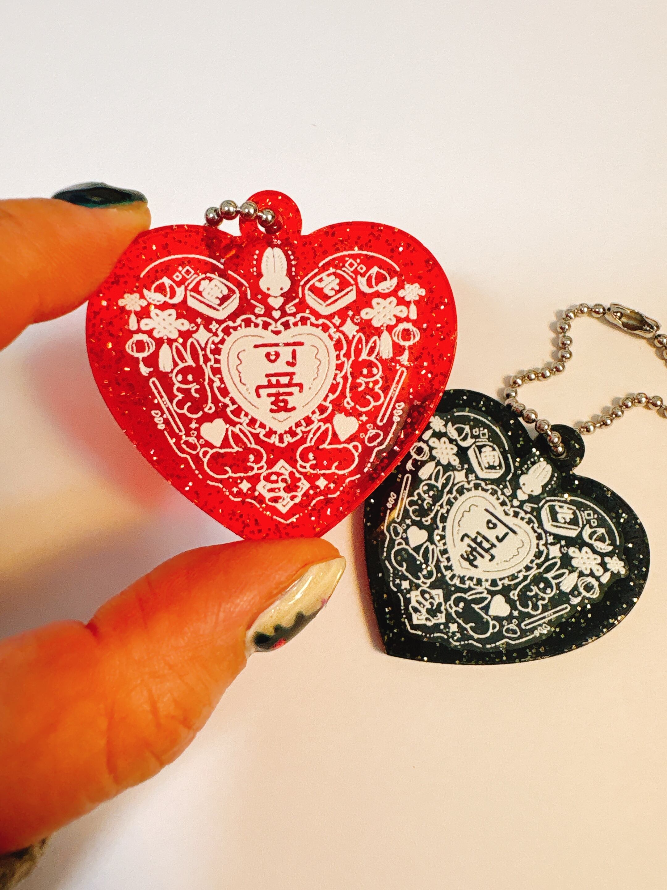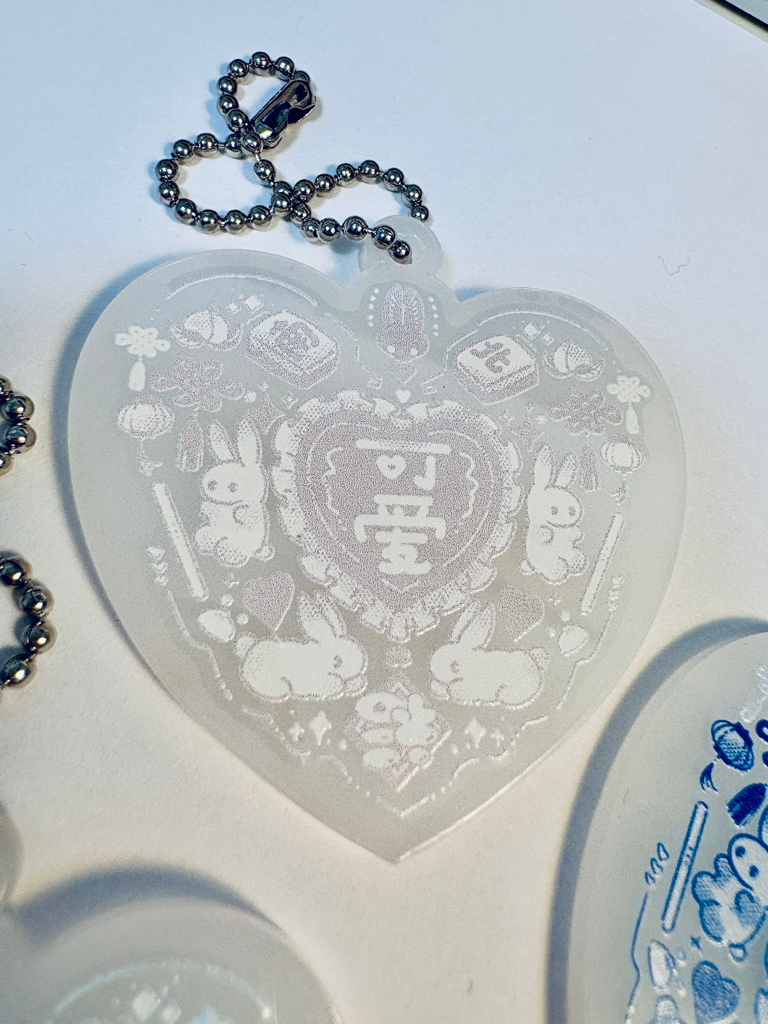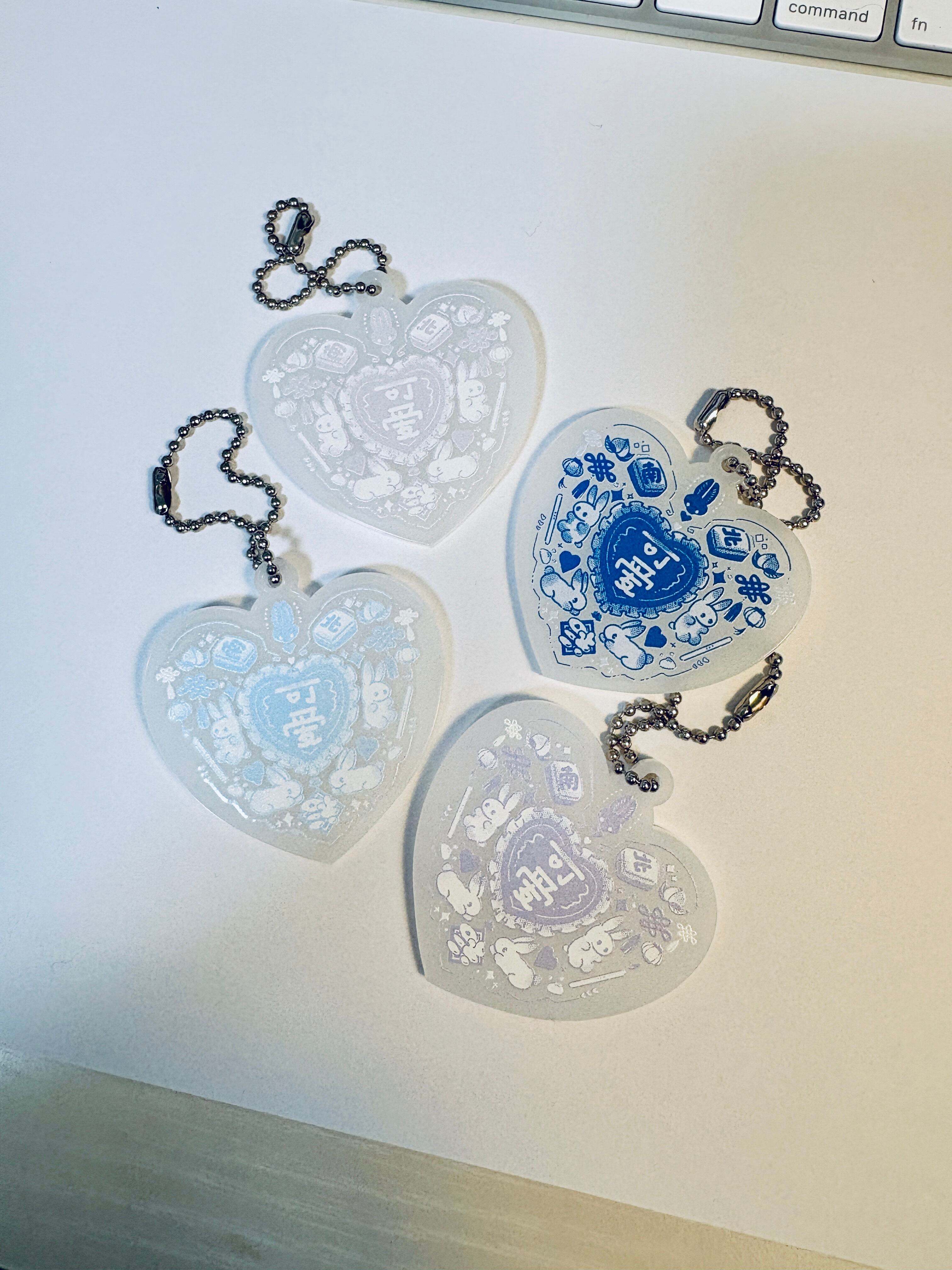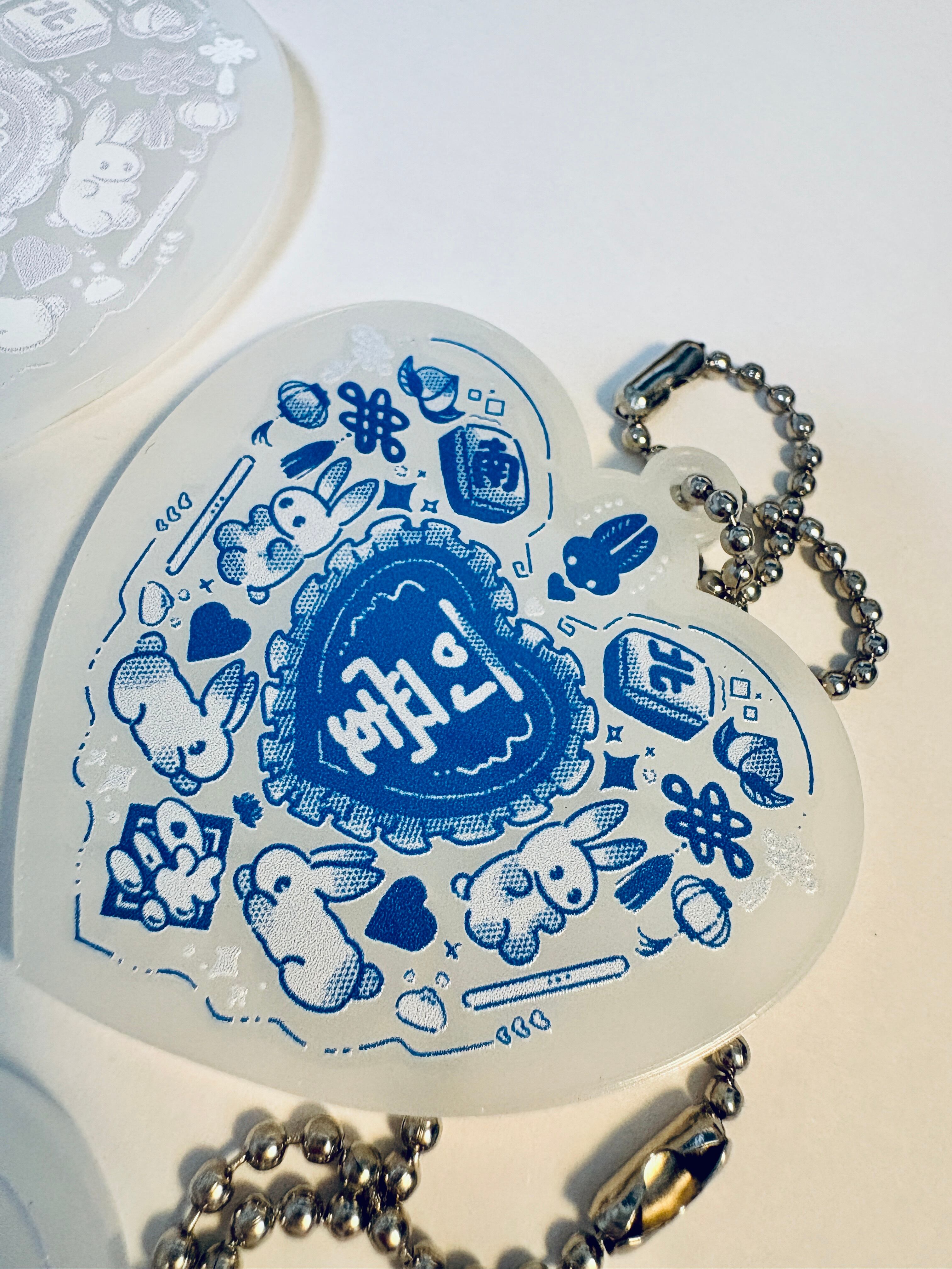 可爱商店で販売中のアクリルキーホルダーになります。 可爱商店のロゴマークに加え、 語呂のいい中華造語 ・喜喜神龍(ルンルンシェンロン) ・新春熊猫(シンシュンシュンマオ) も多数ご用意がございます。 カラーバリエーションも豊富です。 サイズ:約5.5㎝